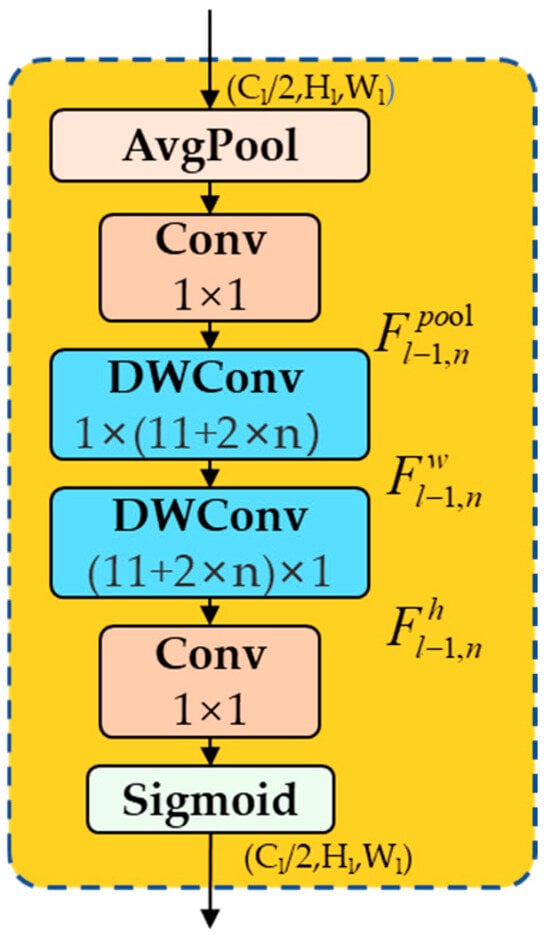 In the following step, two depth-wise separable strip convolutions are utilized in order to approximate the standard large-kernel depth-wise separable convolutions. The specific approach employed is outlined below:
