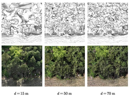 Finally, the images collected by the three methods were used for 3D reconstruction in DJI Terra, and the resulting 3D mesh models will be comparatively analyzed in the following section.