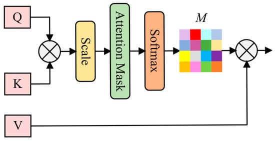 where , , are learnable projection matrices. The attention map is computed by applying the scaled dot-product operation followed by a softmax normalization: