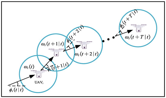 - Yaw angle constraint: The yaw angle is the main control variable in the entire search task, but a larger yaw angle is accompanied by greater energy consumption, which affects endurance time. Therefore, this yaw angle constraint is designed to reduce the negative impact caused by excessively large turning angles, as shown in Formula (15):
