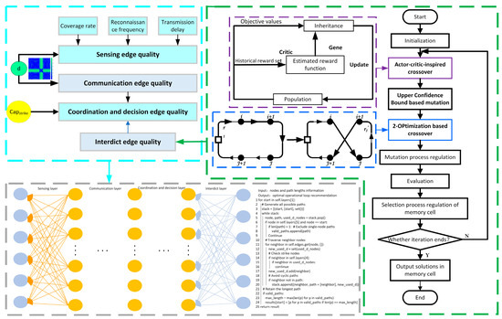 The overall framework flowchart of this work is shown in Figure 1. The green box on the right illustrates the process framework for task allocation in defensive unmanned equipment using the LIA algorithm. The computational results of the LIA are used as input for the edge quality calculation. Through the edge quality calculation process, shown in the blue box at the upper left of Figure 1, the quality of each edge is computed and then serves as input for the defensive loop recommendation process. The gray framework at the bottom of Figure 1 corresponds to the defensive loop recommendation procedure.