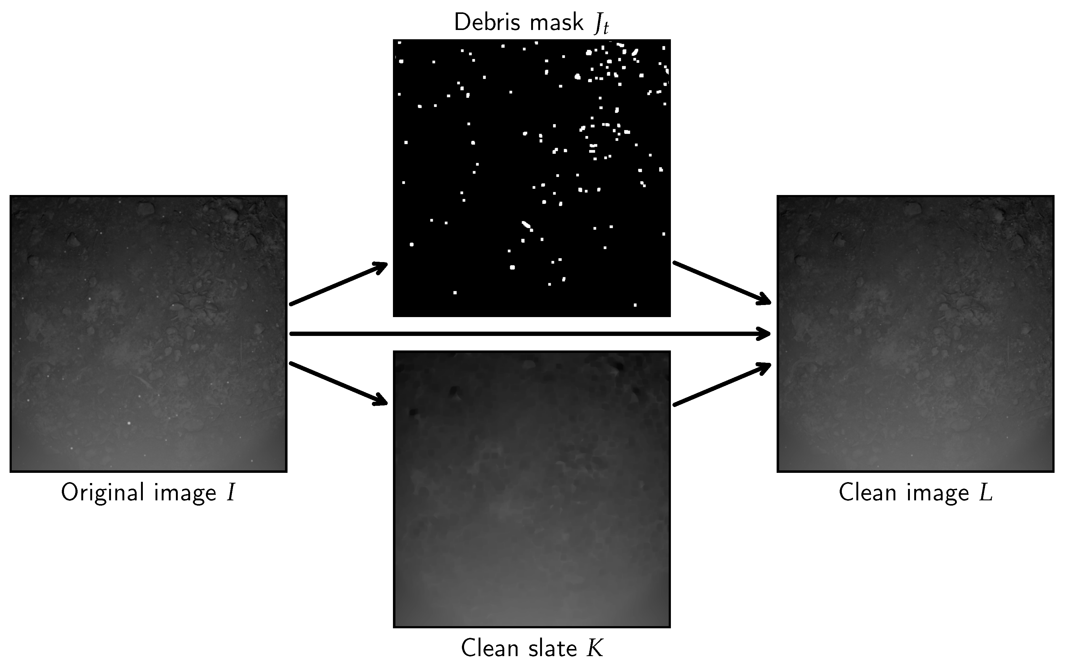| J | Grayscale image with values corresponding to the significance of debris in I | Calculated |