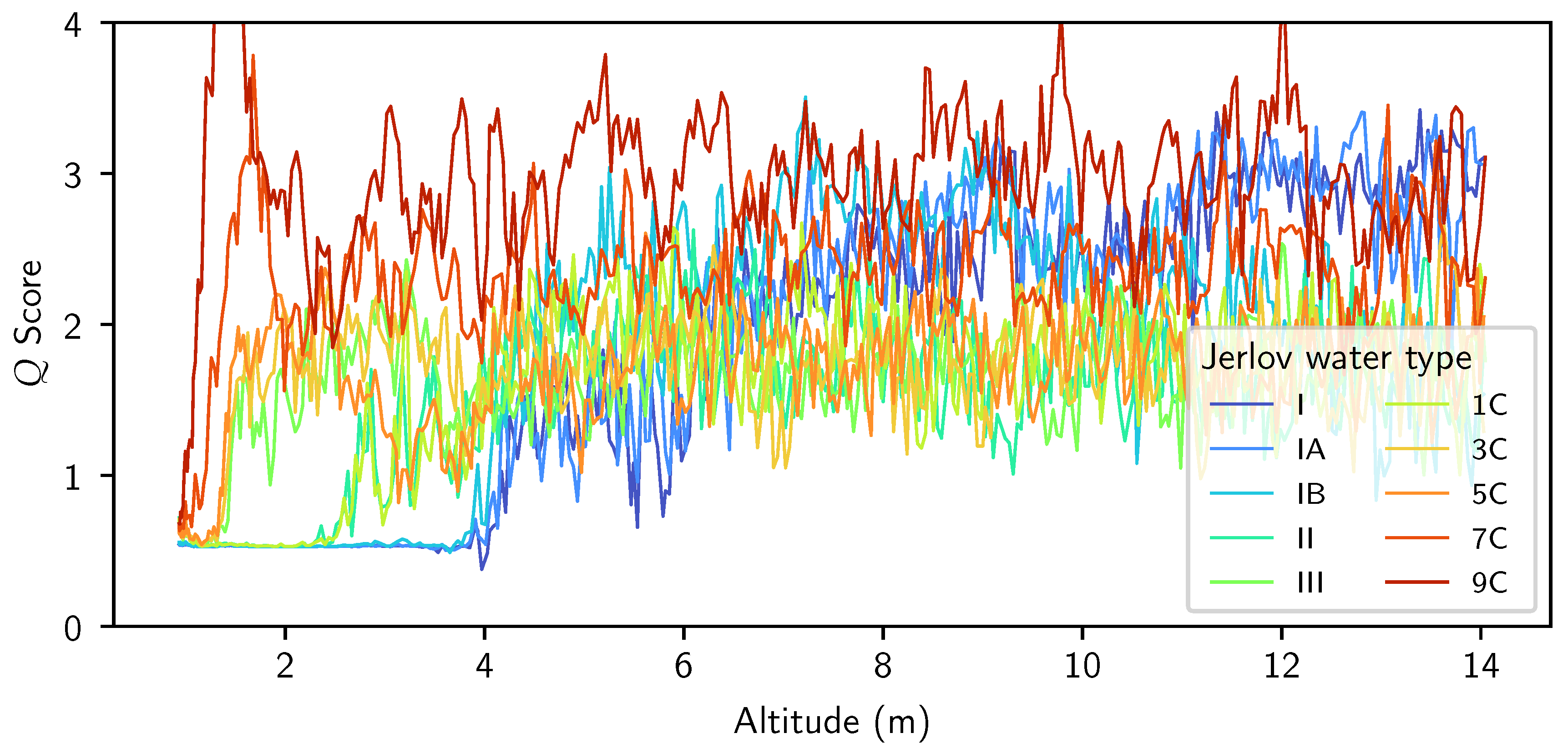 - Jerlov, N.G. Marine Optics; Elsevier: Amsterdam, The Netherlands, 1976; Volume 14. [Google Scholar]
