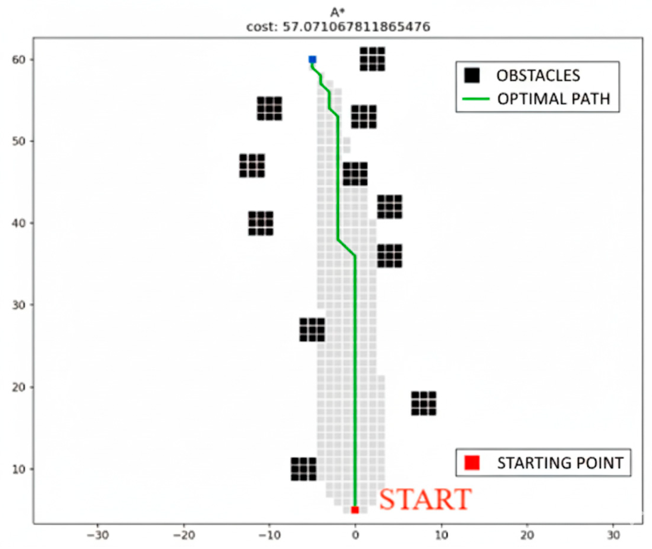 - The obstacle inflation process ensures that the theoretically optimal path found by the A* algorithm is also physically safe for the UGV. This is a critical step that bridges the gap between abstract planning and real-world execution by preventing the UGV’s body from colliding with obstacles.