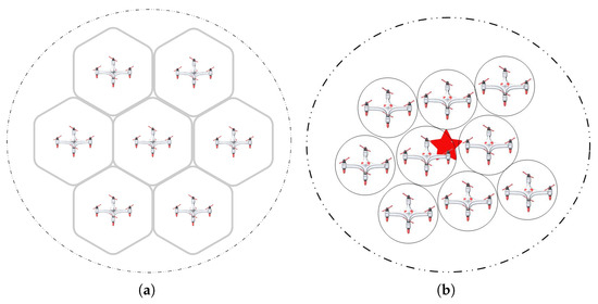 However, this optimal coverage scheme has limitations: with fixed coverage per drone, Voronoi construction may cause resource waste due to overlapping regions, as shown in Figure 7b.