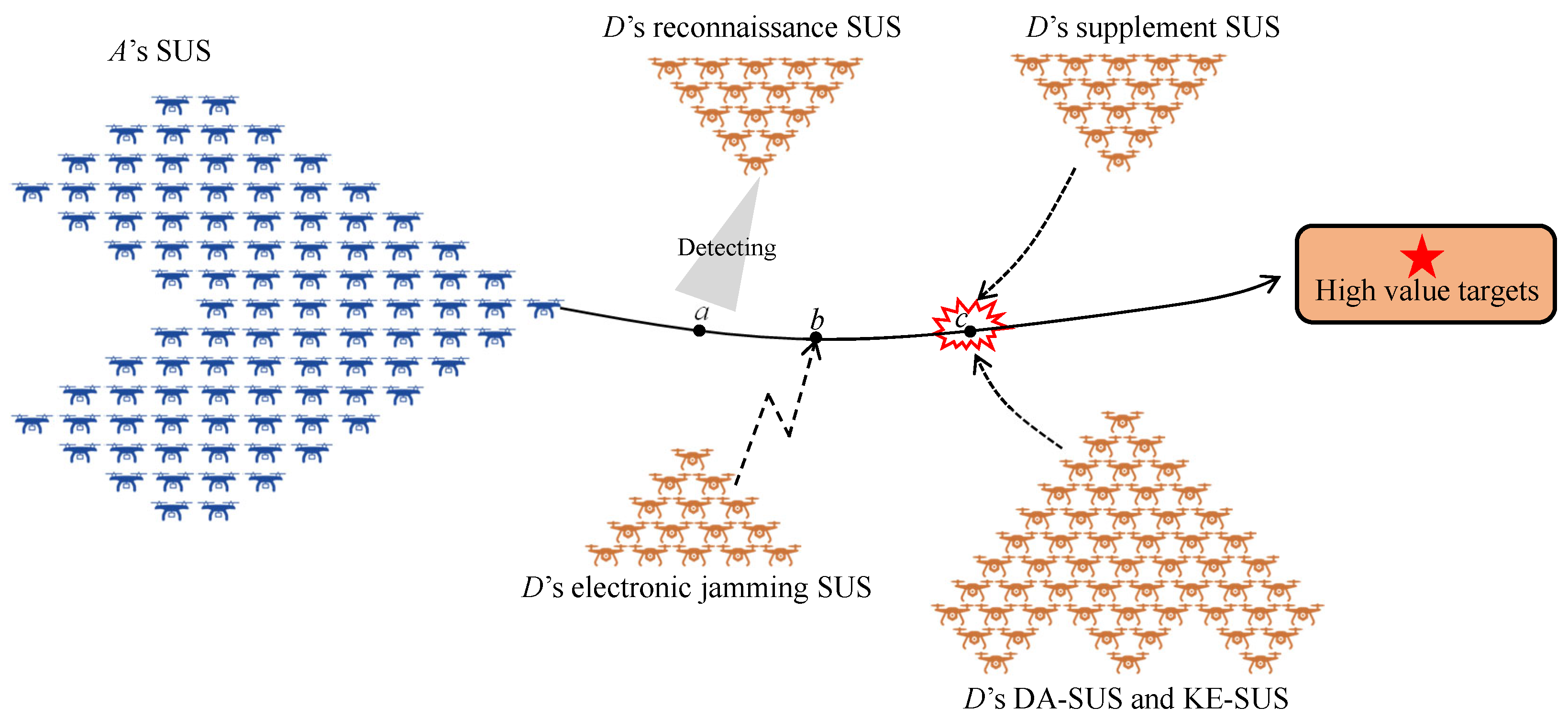 2.2. High-Value Targets Protection Scenario Illustration