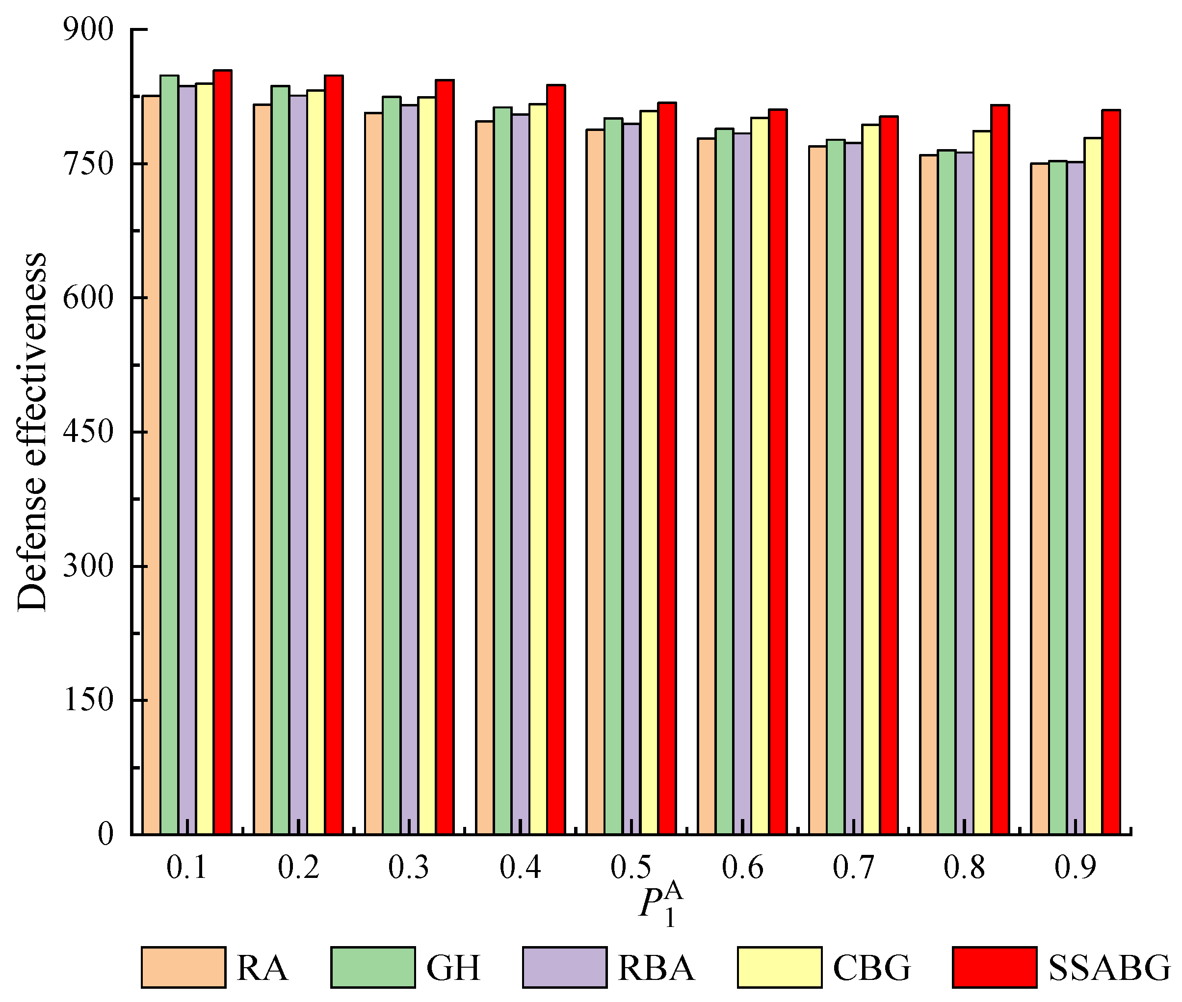 - Random allocation (RA) [41]: a random strength allocation method, making A and D randomly select an allocation strategy for interception or protection.
