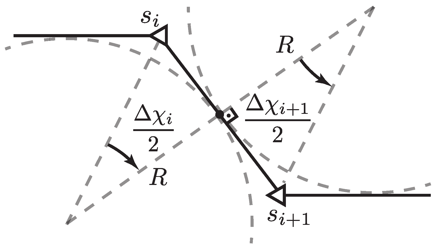 - Third, s must lie behind , such that . This effectively excludes states requiring a significant course angle change to join the final approach.