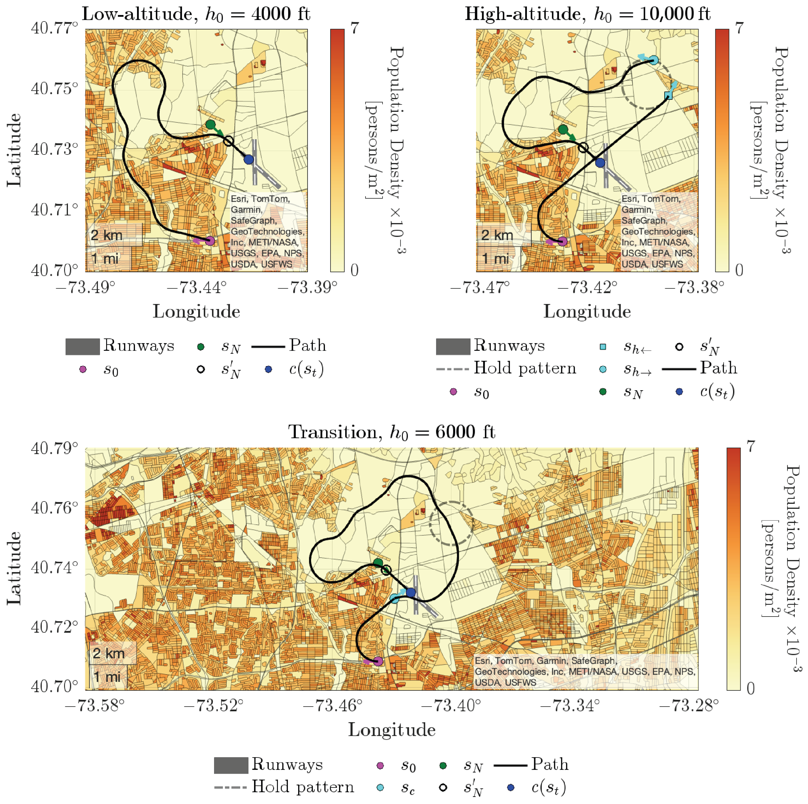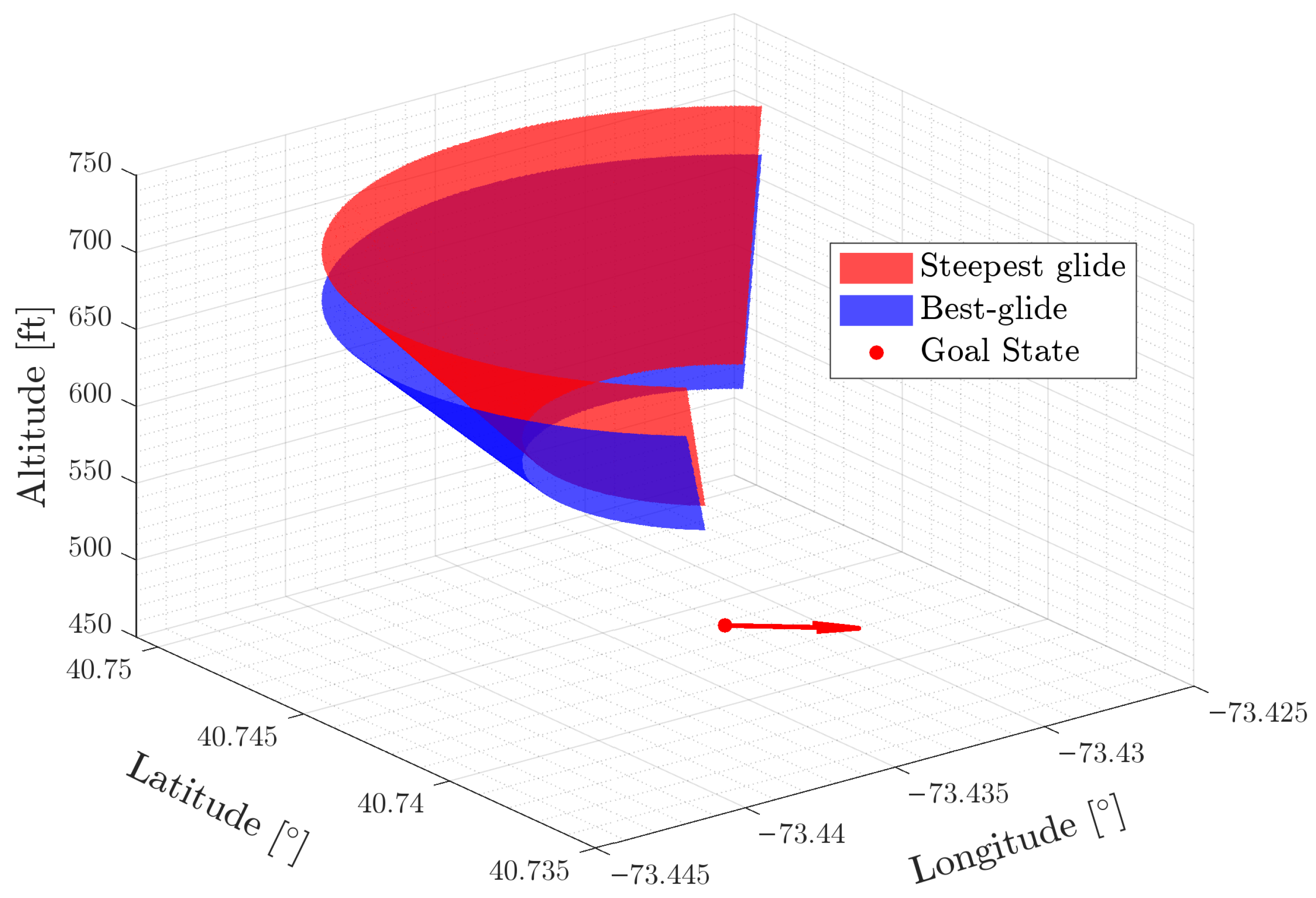 - Tekaslan, H.E.; Atkins, E.M. Gradient Guided Search for Aircraft Contingency Landing Planning. In Proceedings of the 2025 IEEE International Conference on Robotics and Automation (ICRA), Atlanta, GA, USA, 19–23 May 2025; pp. 526–532. [Google Scholar] [CrossRef]