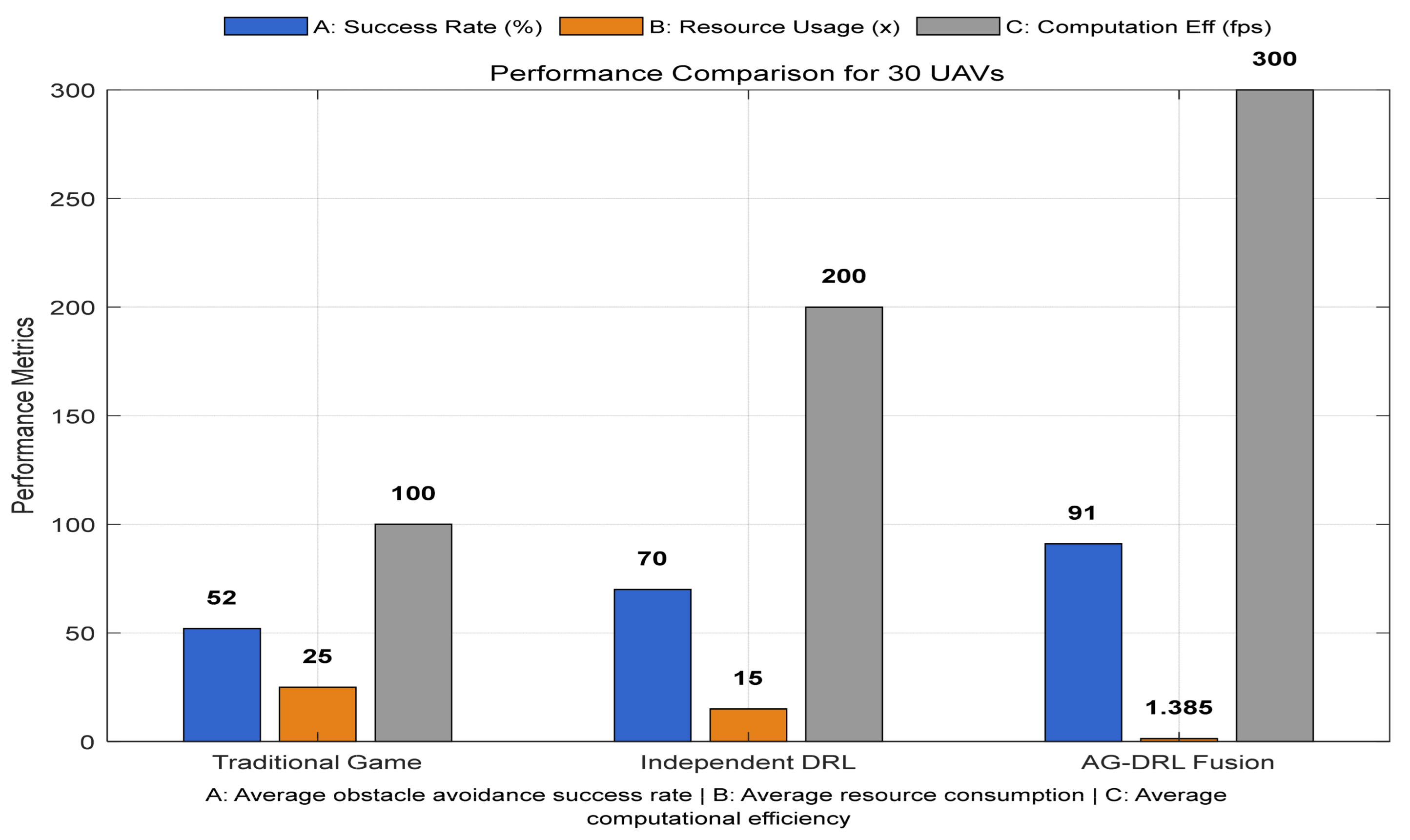 Yao, G.; Guo, L.; Liao, H.; Wu, F. Fusing Adaptive Game Theory and Deep Reinforcement Learning for Multi-UAV Swarm Navigation. Drones 2025, 9, 652. https://doi.org/10.3390/drones9090652