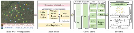 A Hybrid Strategy-Assisted Cooperative Vehicles–Drone Multi-Objective Routing Optimization Method for Last-Mile Delivery
