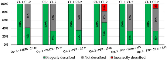 These results shows that all of the CL 1 items were properly recognized and described by the operators. Most of the CL 2 items were not described by the operators, due to the higher level of uncertainty implicitly associated with the difference between assigning a CL 1 or a CL 2 class. However, Figure 7 shows that only a few items were not properly described by the operators, while most of them, when described, were properly recognized.