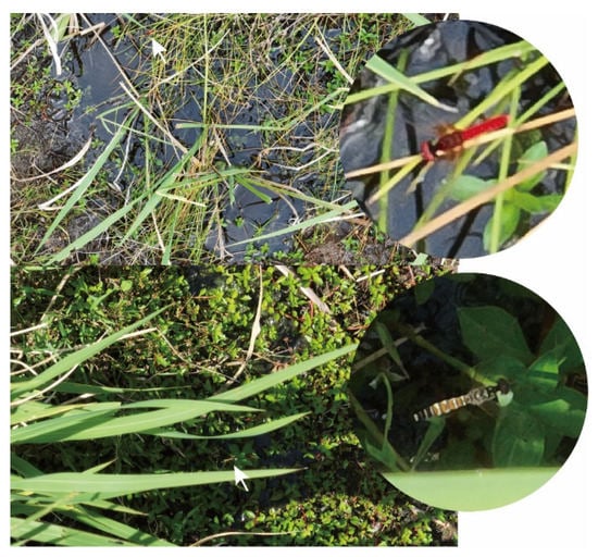 - Inoue, T. Habitat of the relocated Nannophya pygmaea population along with habitat soils. Jpn. J. Environ. Entomol. Zool. 1998, 9, 1–7. [Google Scholar] [CrossRef]