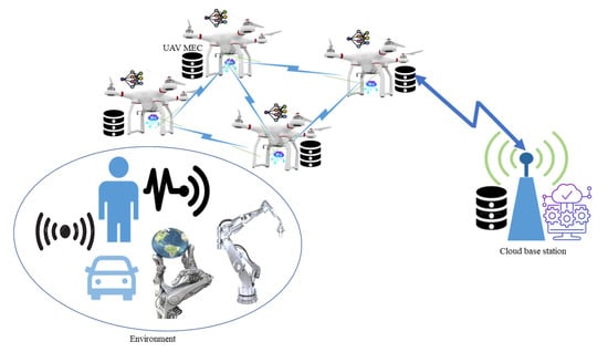 Recently, with the rapid development of the Internet of Everything (IoE), a massive range of new applications and services, such as Augmented Reality (AR), Virtual Reality (VR), e-health, and face recognition have emerged and interacted with each other [1]. These applications begin to place greater demands on computing power, network throughput, and latency in order to provide a better Quality of Service (QoS) [2] and satisfy the Quality of Experience (QoE) [3]. The significant computing workload and storage requirements, on the other hand, place a strain on resource-constrained Internet of Things (IoT) devices. To solve this problem, Mobile Edge Computing (MEC) has been proposed as a paradigm that involves installing servers with rich services closer to IoT devices in smart environments, which can significantly enhance QoS, improve QoE, and minimize energy consumption [4,5]. However, the MEC comprises of infrastructure at fixed locations, preventing it to move closer to IoT devices in places with no communication coverage (e.g., harsh environments) or in particular instances when MEC deployment is difficult.