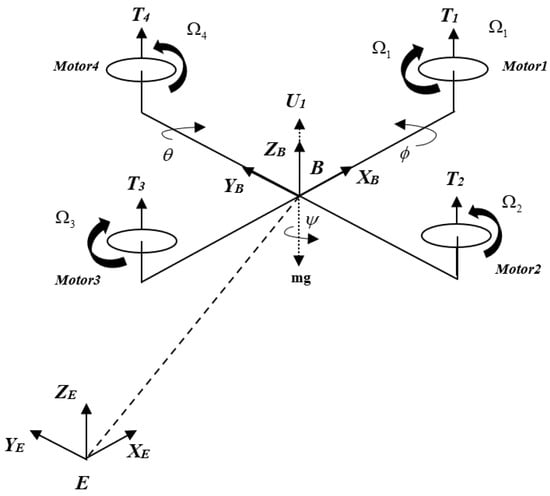 According to the Newton–Euler law, the altitude and attitude of the quadcopter system can be expressed as:
