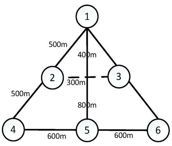 We assume that the formation consists of six UAVs. The topology structure and the formation that we expect are shown in Figure 1 and Figure 2.
