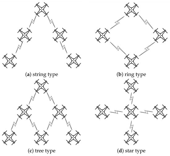 As shown in Figure 3, the network topologies considered in this paper include string type, ring type, tree type, and star type. There is at least one undirected path between every two UAVs in the multi-UAV network to ensure the connectivity of the system.