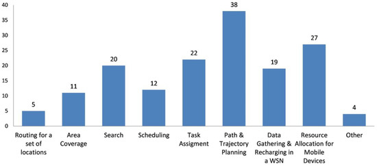 UAV-assisted task assignment is relevant to the UAV routing problem. It refers to the assignment of a UAV or a swarm of UAVs to a number of tasks subject to mission requirements and environmental constraints [98]. The number of tasks does not have to be equal to the number of UAVs employed [99]. This drone operation aims at maximizing efficiency, minimizing system costs, and through cooperative work, meaning multiple UAVs supporting each other’s operation through information sharing, task integration, and resource optimization, reducing overall risks and execution time as well as enhancing the quality of the completed tasks (ibid).