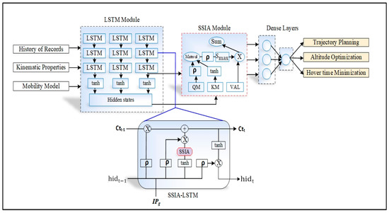 - Self-simulated inner attention long short-term memory (SSIA-LSTM) is used to optimize the hovering duration and reduce the energy consumption of MEC–UAVs during flight intervals. The autonomous trajectory planning and altitude optimization using SSIA-LSTM to enhance the coverage rate by optimally adjusting the altitude of UAVs.