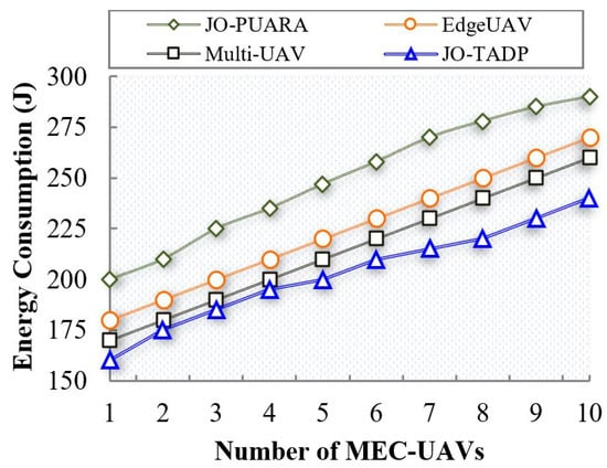 Number of MEC–UAVs vs. energy consumption.
