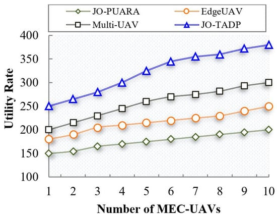 Number of MEC–UAVs vs. utility rate.
