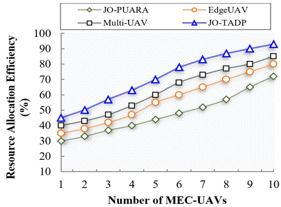 Number of MEC–UAVs vs. resource allocation efficiency.