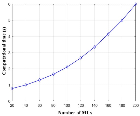 Computational time with respect to the number of MUs.