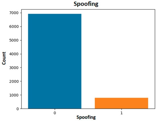 The most important parameters in the SVM-SMOTE resampling method used in this study are set as follows: K_Neighbors = 5 and M_Neighbors = 10. Using these settings, the model achieves the best results. After we use SVM-SMOTE, the number of spoofing samples in the GPS signal dataset increases to the same number as samples without spoofing. Thus, the total number of GPS signal datasets after resampling is 13,828.
