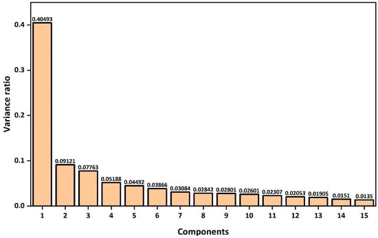 The contribution margin is the proportion of the variance of the principal component to the total variance of the original data, and the larger the contribution margin, the stronger the ability of the principal component to explain the total variance. Thus, the cumulative contribution rate of the first principal components is as follows:
