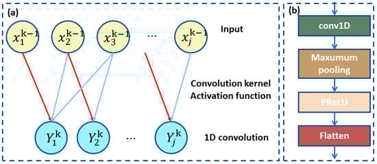 (a) One-dimensional convolutional operation schematic. (b) The network structure of CNN.