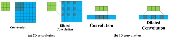 As the signal has fewer dimensions, the length of the signal data is greater than that of the image data. The receptive field is defined as the region in the input space that a particular CNN feature is looking at. The input of the common AMR dataset has a length of 1024. However, ordinary convolution always has fewer receptive fields, which are 3 with a 3 kernel size, and successive convolution layers have 5 receptive fields. Let k be the kernel size, and s be the stride of the convolution layer. Then, the receptive field of the convolution layer can be calculated as: