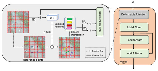 where and indexes all locations on . In addition to a deformable multi-head attention(DMHA) block, the TIEM also contains a feed-forward network (FFN) and a layer normalization layer (LN) layer [54]. The TIEM module can be formulated as