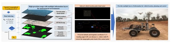 While urban road vehicles experience driving instability primarily due to high-speed dynamic operations, lower-speed engineering vehicles in off-road scenarios are more prone to unsafe rollover accidents due to variable vehicle structures and complex terrain environments. This risk is particularly significant when facing occluded visual fields or inaccurate traversability estimation [22,23,24]. Effectively predicting and estimating the risk motion state through a coupled vehicle-terrain dynamic model in unstructured environments enables early risk warning and motion trajectory planning for autonomous engineering vehicles [25]. However, real-time solutions of the coupled model increase the burden on the vehicle control unit and do not provide sufficient time margin for control decision-making in autonomous engineering vehicles. Therefore, integrating safety-assured semantic information into global maps can efficiently provide real-time risk motion states, enabling safe driving operations for off-road engineering vehicles.