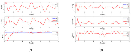 It is crucial to substantiate the control performance and robustness of the attitude controller, given its direct relevance to the overall controller. In the attitude control law as shown in Equation (27), both and were set as 10. The desired tracking attitude is given as