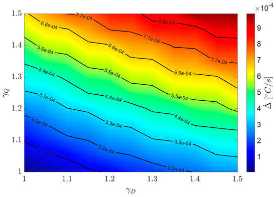 To simulate degradations of the thermal flows, Equation (2) is generalized in the model, by introducing two nondimensional factors, and (), so that the model can deviate from normal behaviour in terms of generated and dissipative heat contributions respectively, Equation (18):