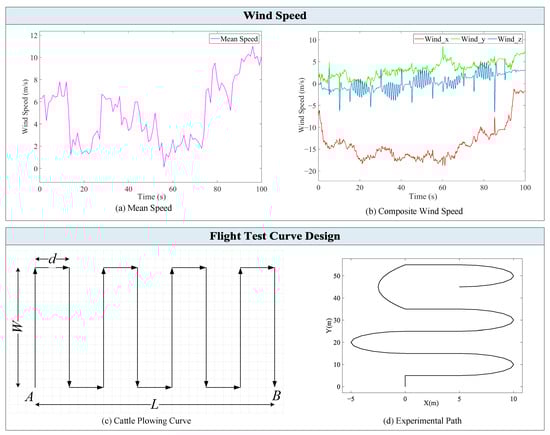 where represents air density, S is the effective area of the fuselage, is the wind speed size component of the wind field, and denotes the air resistance acting on the directional component. According to the real site, wind speed exhibits uninterrupted and gradual changes. Therefore, the air resistance caused by the wind disturbance is continuous and microscopic.