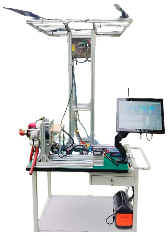 Before conducting the flight experiment of the improved series hybrid power architecture on the compound-wing VTOL, it is necessary to perform a ground performance experiment to verify the overall system stability. Therefore, a ground test bench has been assembled as depicted in Figure 17. Additionally, some parameters of the ground test bench are presented in Table 4.
