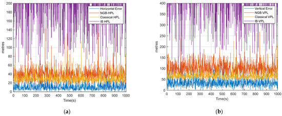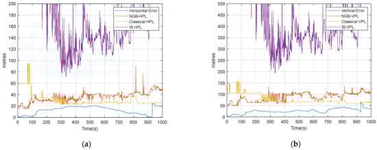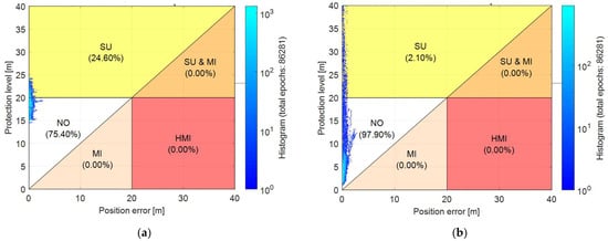Lastly, in the urban canyon scenario, the NGB-PL approach was capable of providing 5.61% GNSS availability with a narrower average BG, and the MI rate was decreased by 1.36% compared to the classical approach. However, neither the conventional nor the proposed approaches can offer an intended level of availability for vertical positioning.