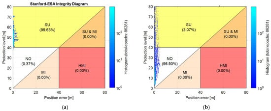 - Tossaint, M.; Samson, J.; Toran, F.; Ventura-Traveset, J.; Sanz, J.; Hernandez-Pajares, M.; Juan, J.M. The Stanford–ESA Integrity Diagram: Focusing on SBAS Integrity. In Proceedings of the Institute of Navigation–19th International Technical Meeting of the Satellite Division, ION GNSS 2006, Fort Worth, TX, USA, 26–29 September 2006. [Google Scholar]