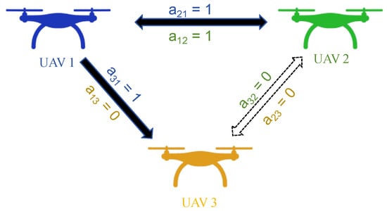 For example, as shown in Figure 1, UAV1 and UAV2 can communicate with each other, UAV2 and UAV3 cannot communicate with each other, and UAV3 can only receive UAV1 information but cannot transmit information to UAV1.