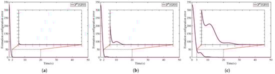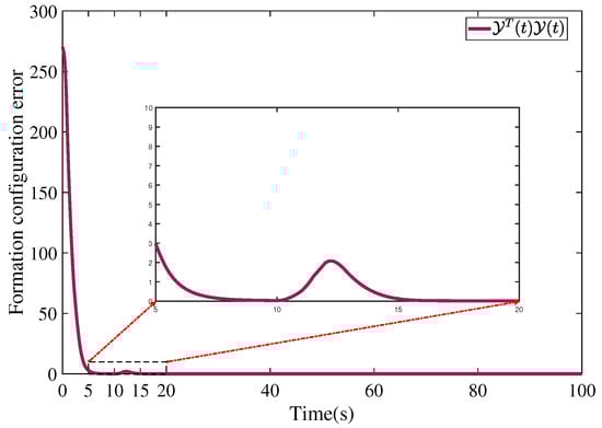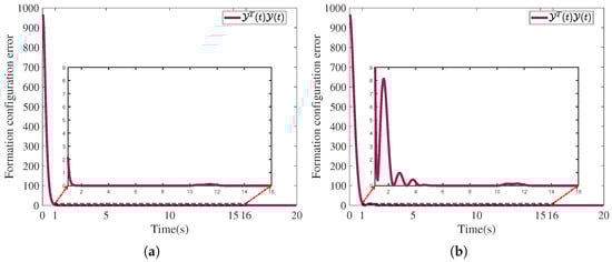 It can be seen from (14) that is merely related to the formation configuration and the tracking trajectory , that is, the decoupling of is realized. Under the condition that and satisfy (15), by designing the appropriate to meet (14), the TVF trajectory tracking control can be implemented. In addition, it can also reduce the system analysis variables and achieve the effect of dimension reduction.