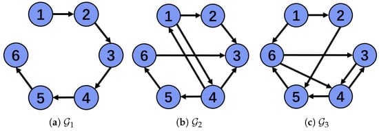 ([]). Under Assumption 1. The Laplacian matrix has a simple eigenvalue 0 with the eigenvector , which implies that is valid. All eigenvalues except 0 have positive real parts, i.e., .