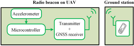 This paper addresses the need to develop radio beacons adequate for locating small UAVs in distress after a crash accident. Traditional emergency locator transmitters (ELTs) used to locate manned aircrafts in an emergency are not suitable for finding small UAVs. They are not only too big and heavy (a common optimized ELT measures approximately 17 cm × 8 cm × 8 cm, and weighs 0.9 kg) but also interact with the international satellite system for search and rescue Cospas-Sarsat System [11,12,13], which utilizes expensive technology and human infrastructures that should be focused on saving people’s lives. The other types of emergency beacons that interact with the Cospas-Sarsat System, which are also not suitable for small drones, are the emergency position-indicating radio beacons (EPIRBs), designed for maritime navigation, and the personal locator beacons (PLBs), beacons for personal use that are usually activated manually (alpinists, hikers, etc.). In addition, the prices for all these distress radio beacons vary from USD 400 (the PLB) up to USD 10,000 (the ELT and EPIRB).