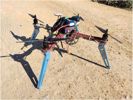 Regarding dimensions, our previous radio beacon [14] had a size of 101.5 mm × 53.3 mm × 50 mm, while the beacon proposed here has a slightly smaller size, 94 mm × 34 mm × 34 mm. The weight is similar in both cases, around two hundred grams. These sizes and weights can be easily accommodated by most small UAVs, and, of course, by larger ones. It is estimated that any UAV with a maximum take-off weight (MTOW) greater than one-and-a-half kilograms could carry this radio beacon without problems.