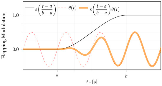 The modulation strategy in this paper consists of defining a smooth transition between rest and motion, which is denoted by Smooth Harmonic Flapping (SHF). Modulation improves the quality of the flapping by reducing the excitation of higher frequencies and undesired vibrations. The smooth function is defined as: