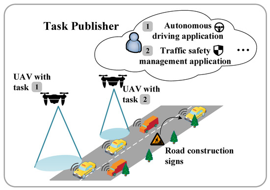 We consider an application scenario that consists of task publishers, a fleet of UAVs, and VUs, as illustrated in Figure 1.