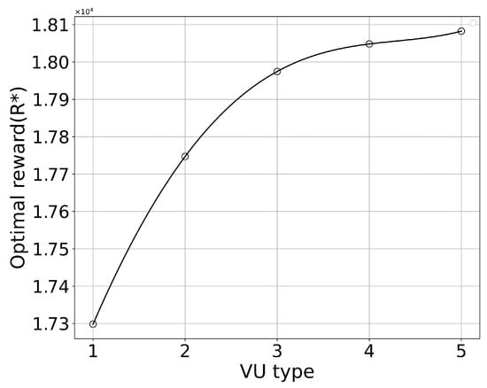 Different optimal rewards versus VU types.