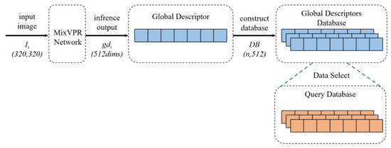 The process of building a global descriptor database and query database Q using MixVPR’s global descriptors.