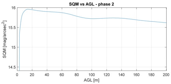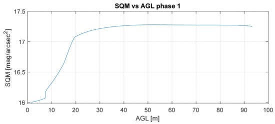 Figure 7 shows the dependence of the SQM value with a change in the flight altitude (AGL—above ground level).