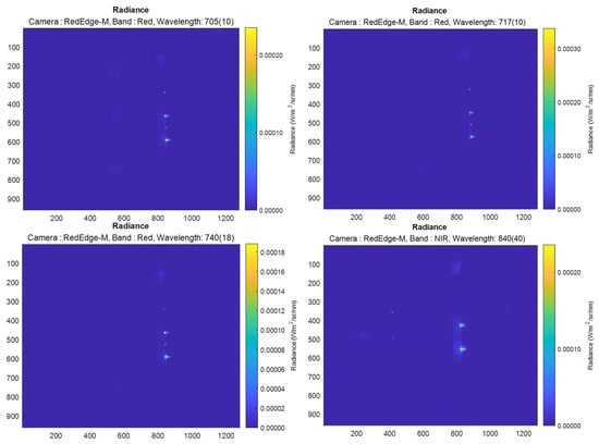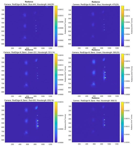 More on the issue of calibration of multispectral cameras for UAVs can be found in the article [37]. This study adopted the radiometric calibration method as above, although new, more precise solutions in this field are already available [38].